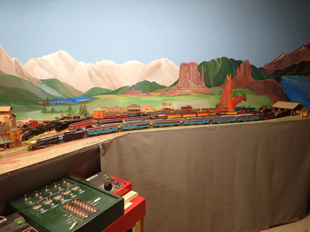 Here is a working version of The Little Train of the Capira, a wonderful symphonic gem by Villa Lobos. I’d like to make a music video with both the train and the composition for you in the future, (but I have to learn how to do it!) The train features European style coaches and is powered by a Bowser Atlantic locomotive.